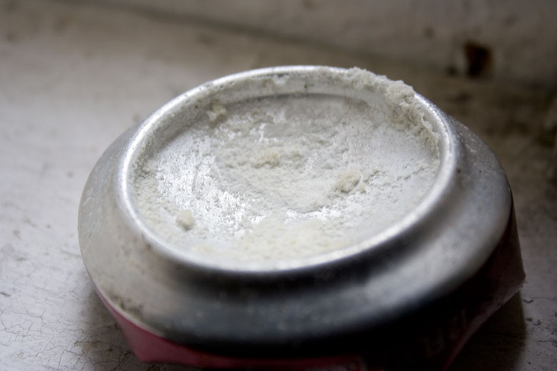 I found this on a windowsill. If my experience with drugs (I have no experience with any drugs, seriously) has taught me anything, it's that this shredded Coke can was used to mix an illicit substance and water in order to inject it. Further analysis reveals that it was not heroin, as that generally is much darker. Coupling this with evidence uncovered previously (her doctor's appointments), I came to the conclusion that the squatter was doing the following: